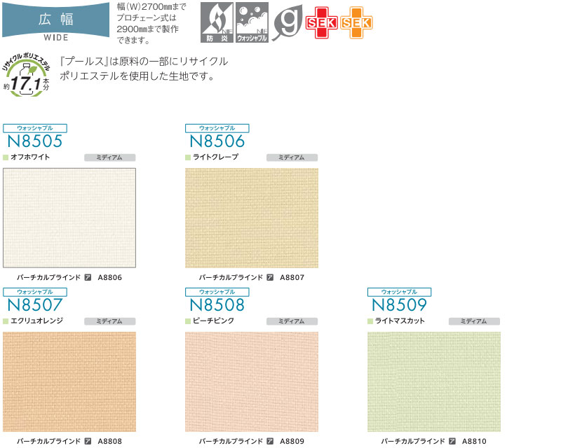 ロールスクリーン ニチベイ ソフィー 標準タイプ 抗菌 プールス