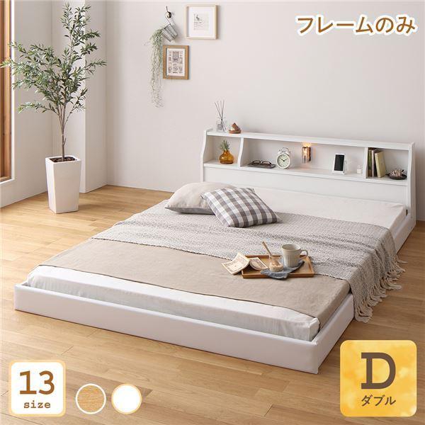シンプルモダンベッド 低床 ロータイプ すのこ 木製 LED照明付き 棚