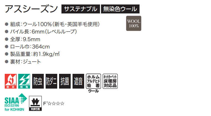 カーペット アスワン アスノーチェ 全厚16mm 240×240cm | カーペット