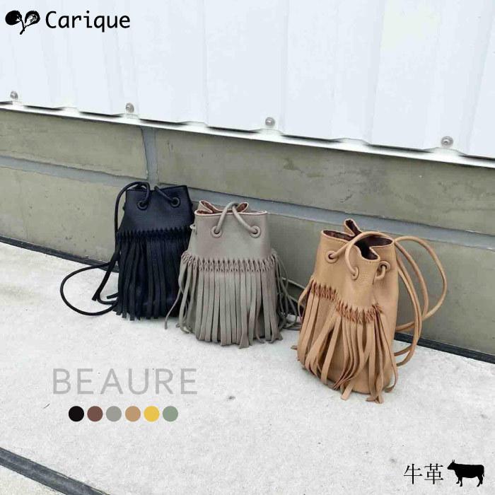 BEAURE ⁄ ビュレカウレザー ショルダーバッグ レザーバッグ 牛革 ミニバッグ 巾着バッグ シボ感 本革 底鋲 B-24209