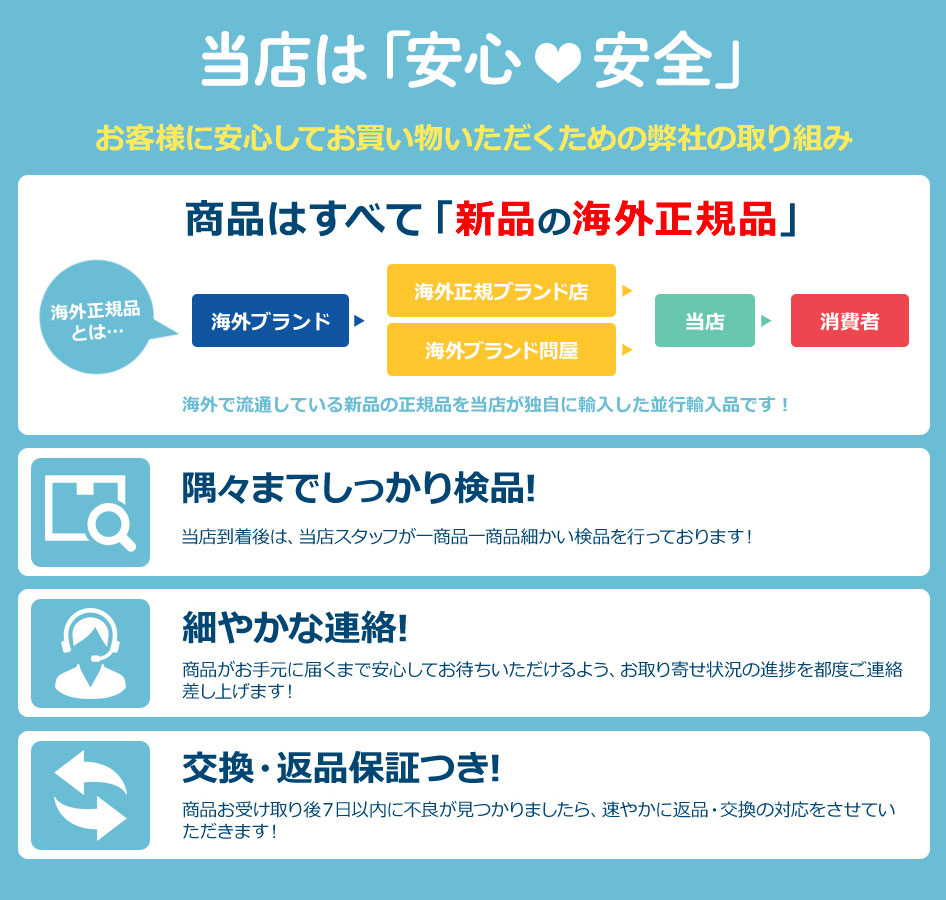 | 返品/交換 | 商品ページ上の詳細やお知らせ・ご注意を参考してください。 | ||