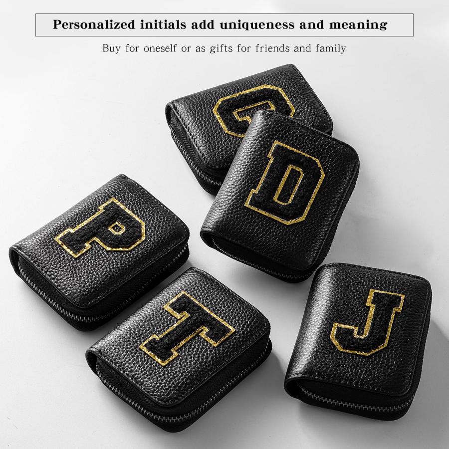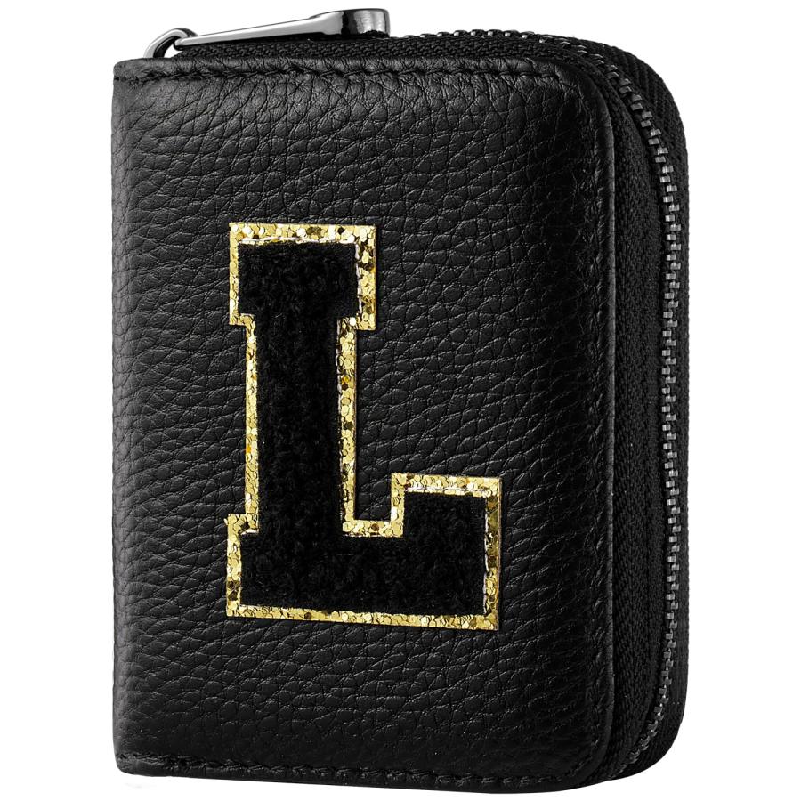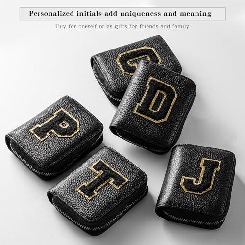Ini-tial Genuine Leather Credit Card Holder Zipper Wallet,RFID Credit Card Holder With 21 Card Slots,Personalized Letter Small Wallet