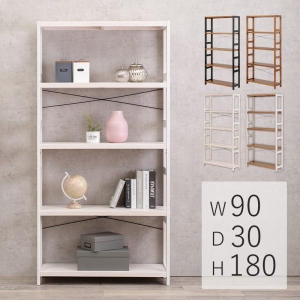 オープンラック 5段 ヴィンテージ調 天然木棚板 幅90cm