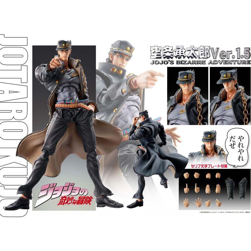 | 材料/素材 | (C)荒木飛呂彦&LUCKY; LAND COMMUNICATIONS/集英社メディコス・エンタテインメントが放つ人気シリーズ 【超像可動】 『ジョジョの奇妙な冒険 第3部』より、主人公「空条承太郎 Ver.1.5」が再登場ッ!12種のハンドパーツに加え、ポケットに手を入れたポージングを再現できるパーツの他、「やれやれだぜ」のセリフ文字プレートが付属します!原型制作:PROGRESS塗装済み可動フィギュア造形プロデュース:匠工房 | ||