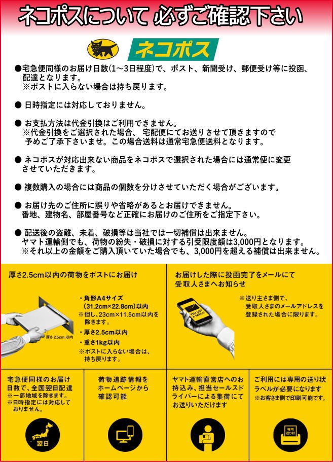 | 返品/交換 | 商品ページ上の詳細やお知らせ・ご注意を参考してください。 | ||